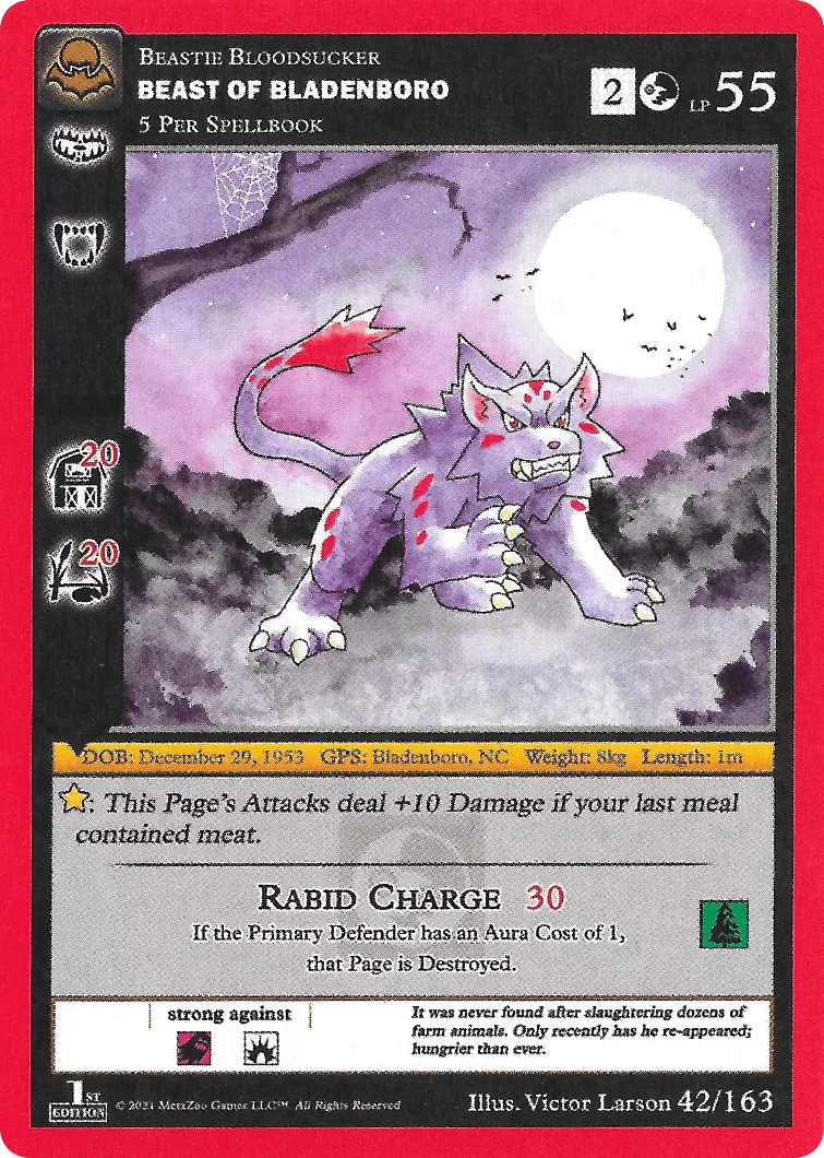 Nightfall is the second ever released set by MetaZoo Games, right after Cryptid Nation: Base Set. It was released in October 2021, and is the first Cryptid Nation block expansion of several planned releases.