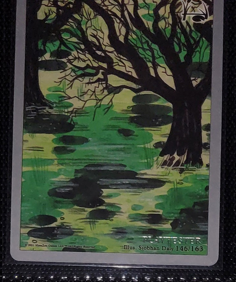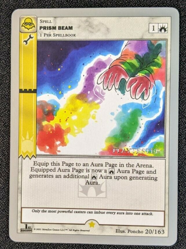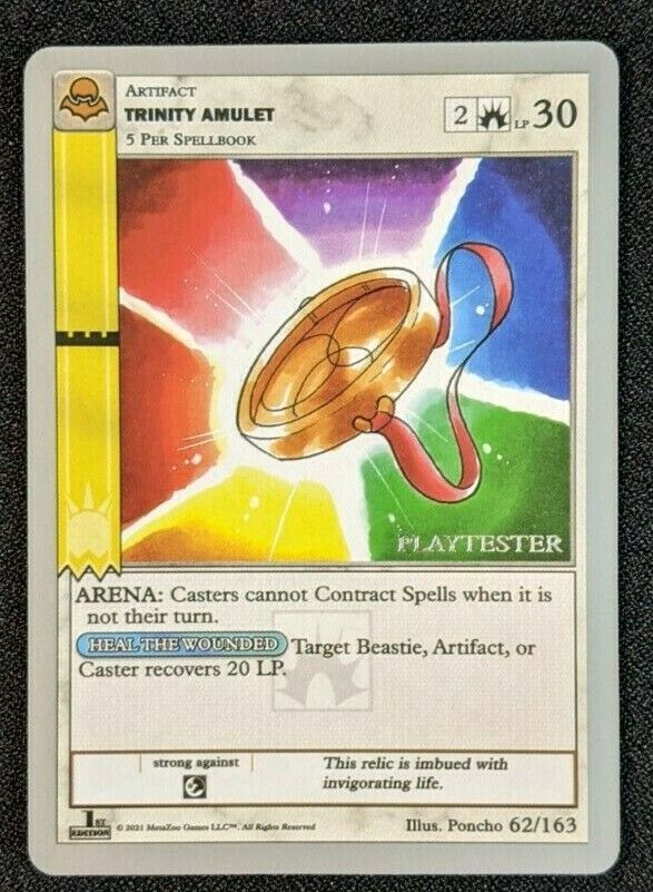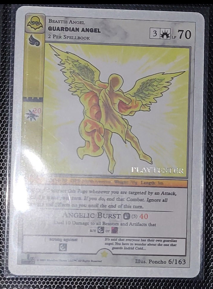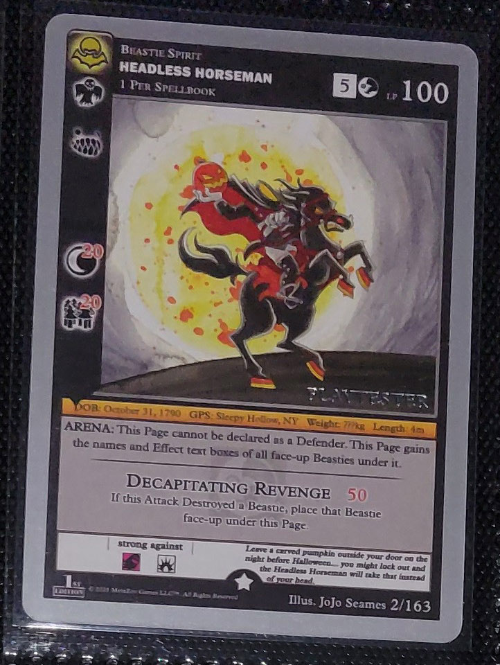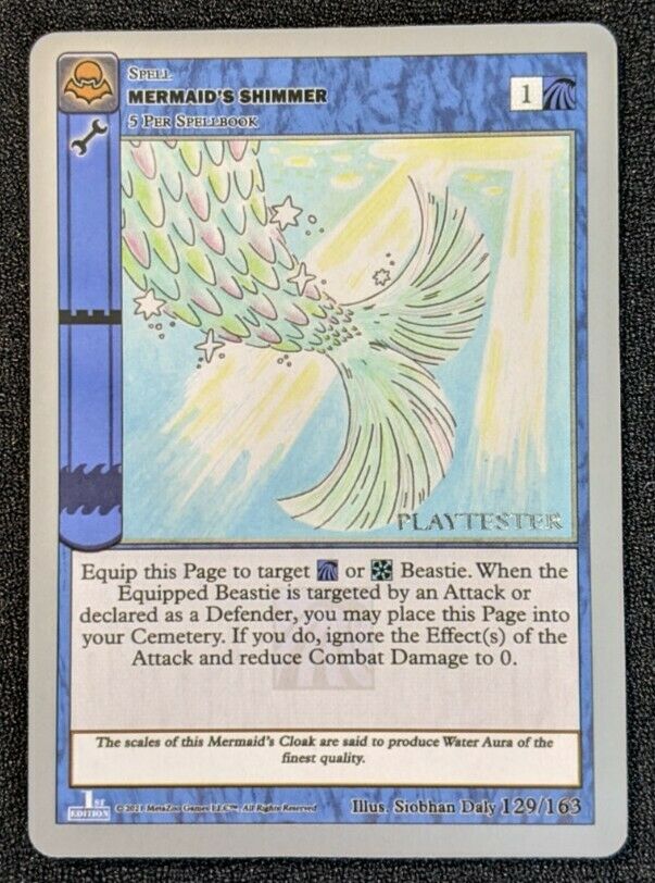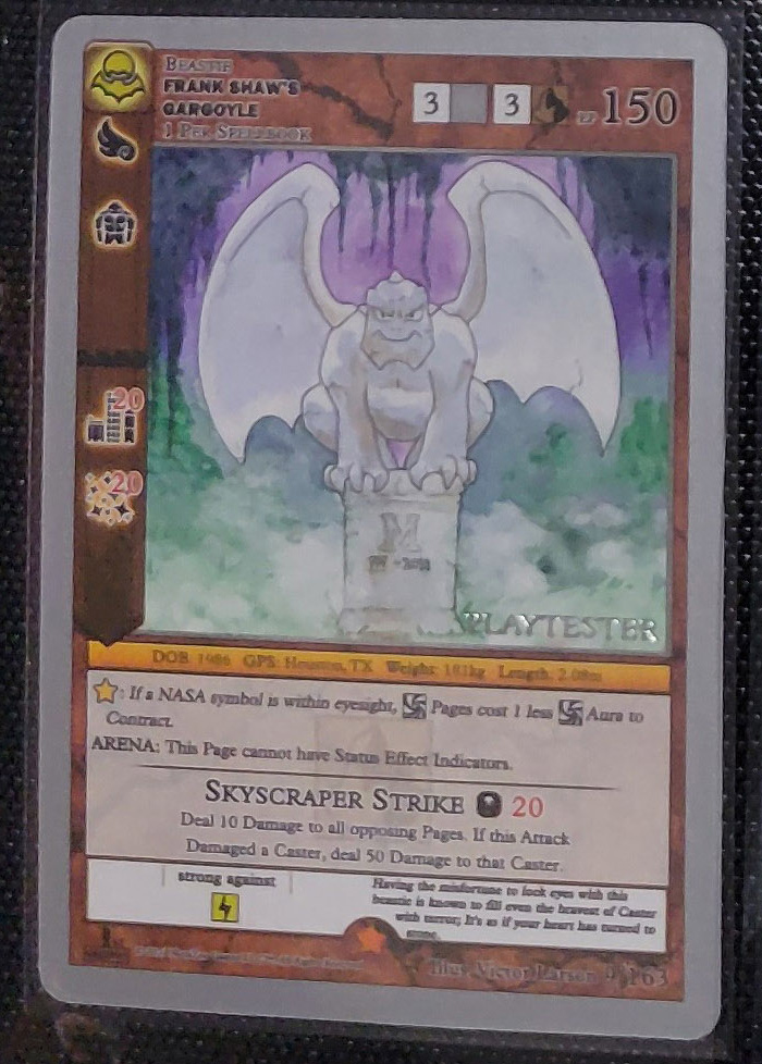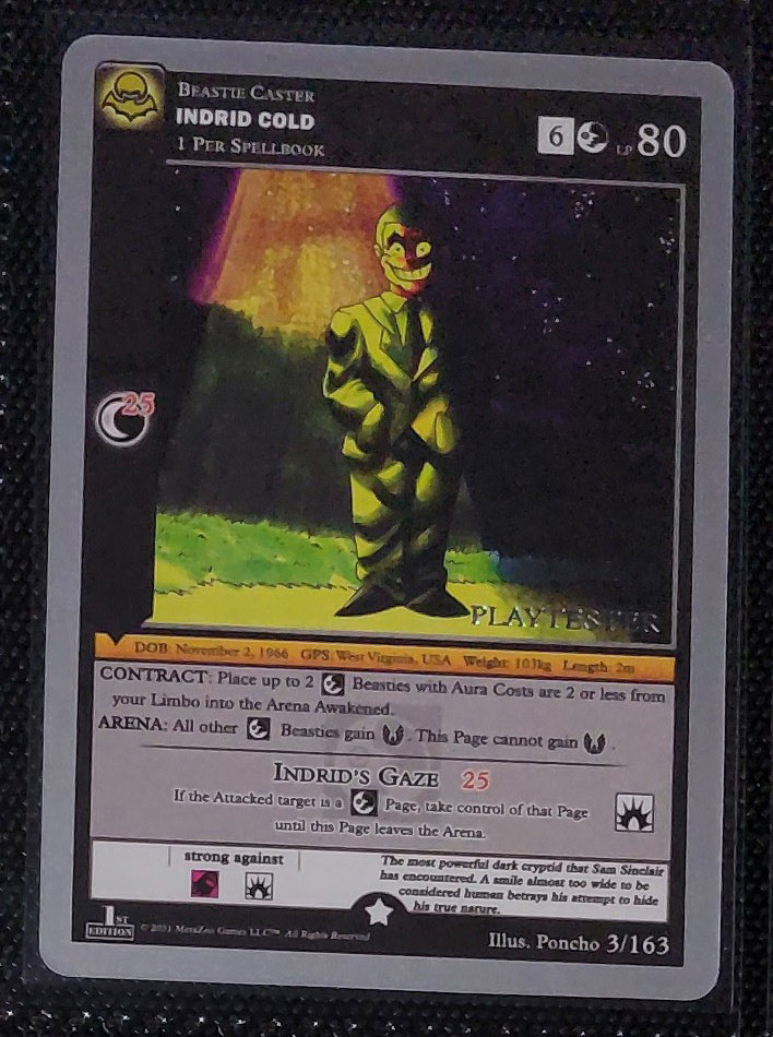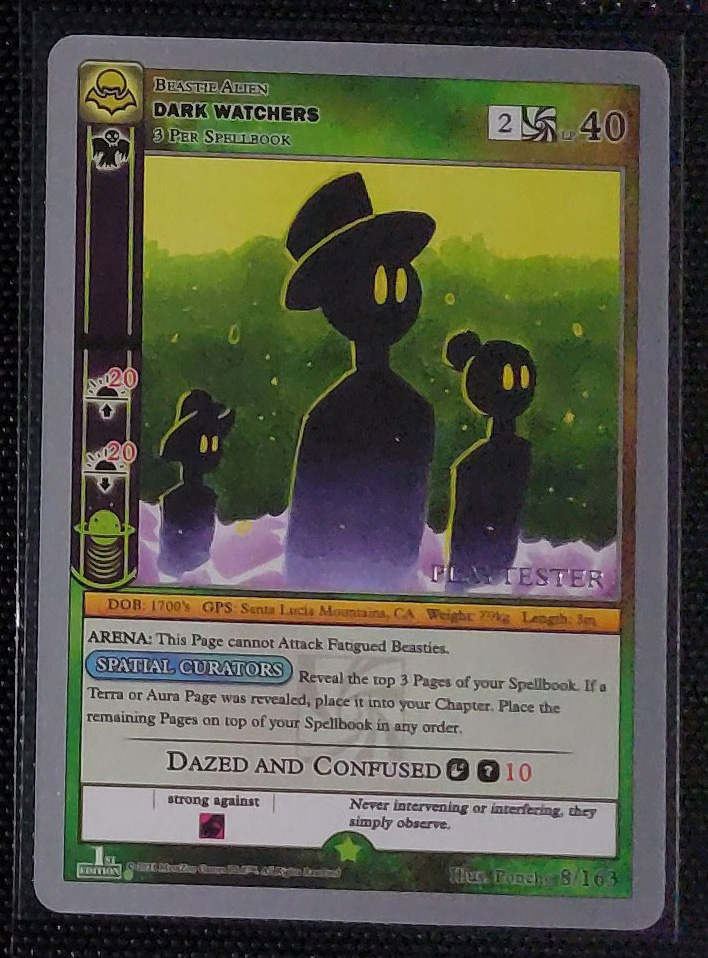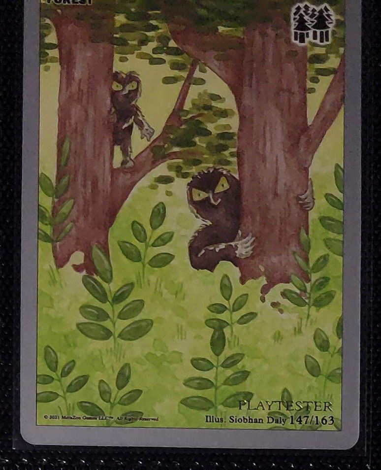 - Playtester cards also have a glistening silver ‘PLAYTESTER’ stamp on the bottom-right of each illustration window.