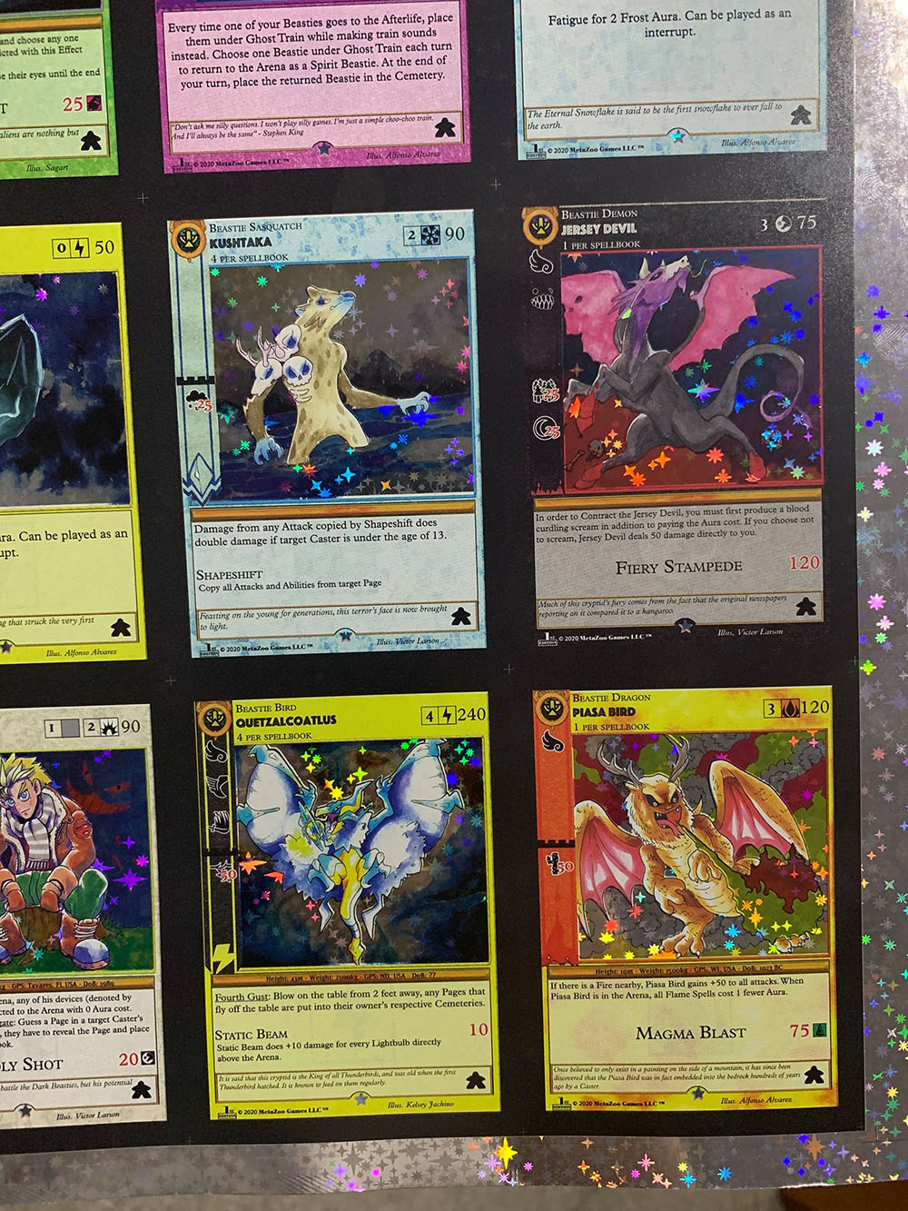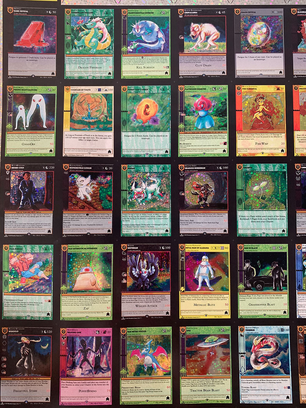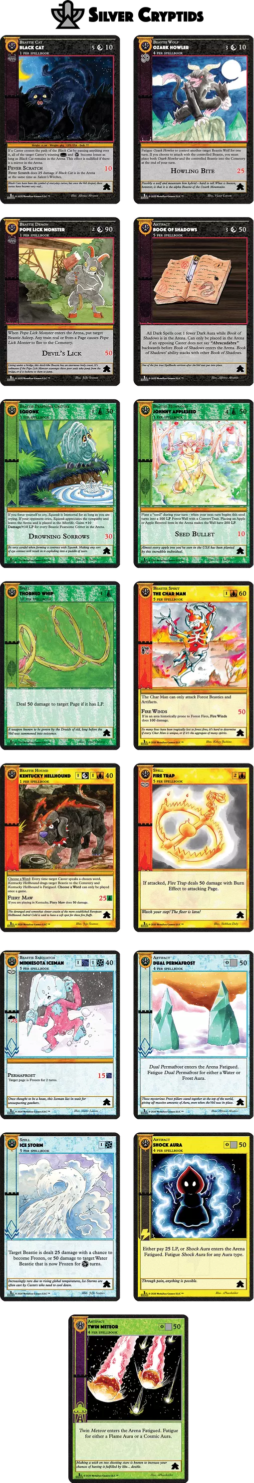 The most notable differences between sample cards and the first release of Cryptid Nation: Base Set are: