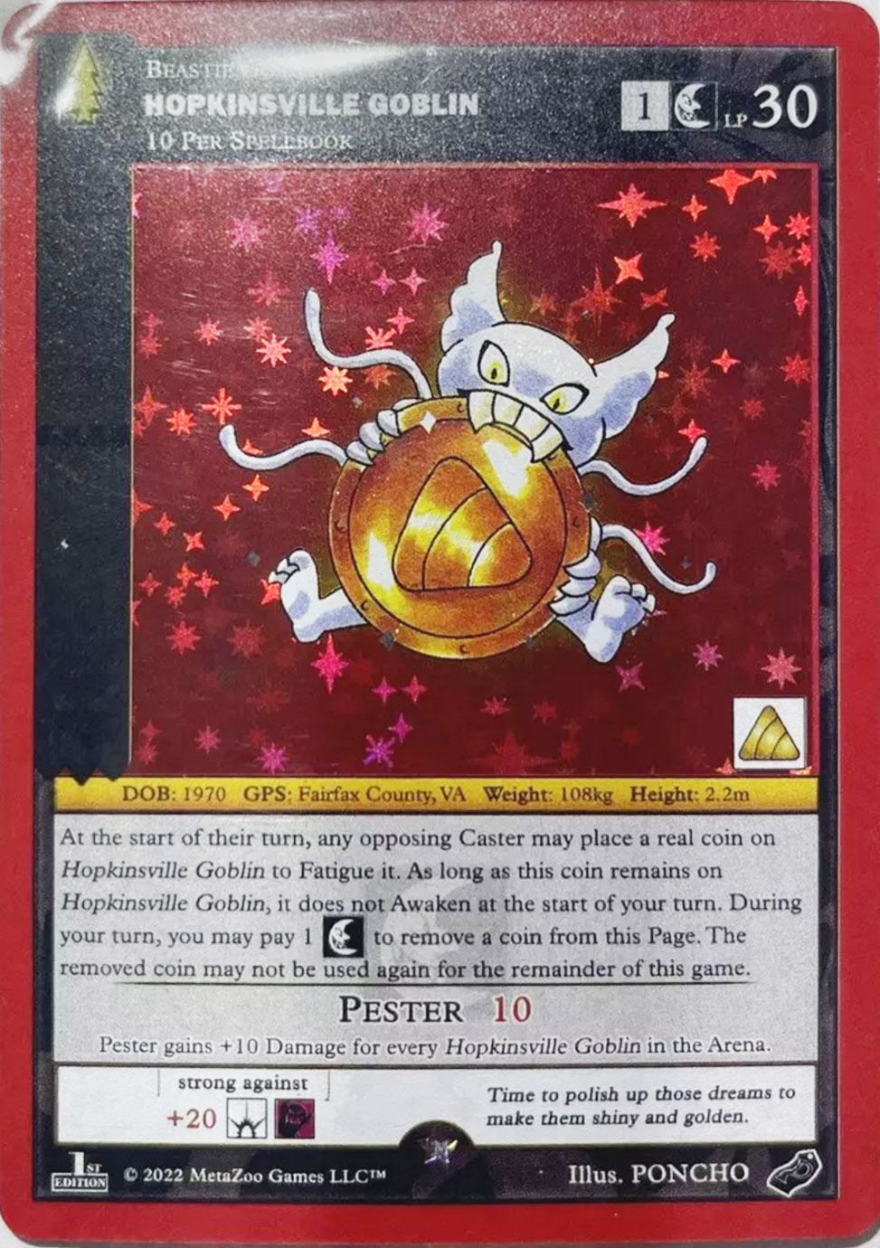 - This is the first serialized MetaZoo TCG card to be created and in the hands of buyers. (Note the gold stamped 22/100 on the bottom left.)