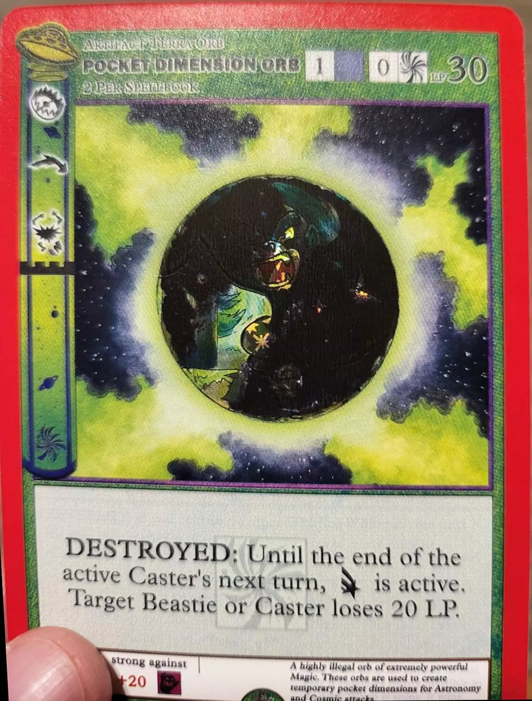 - 1st card: Pocket Dimension Orb shows the ‘Whirling Whimpus’ illustration within its orb.