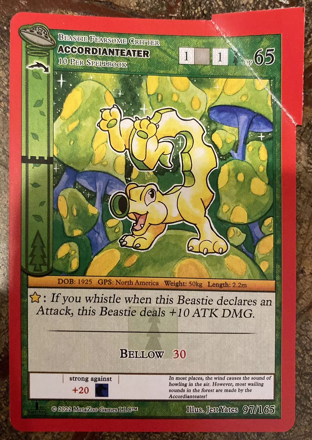 - This was a card being used as a divider while sorting cards in the sorting/printing facility. They are not related to MetaZoo whatsoever and were not meant to be found in booster packs; but some did slip through the cracks for Cryptid Nation 1st Edition.