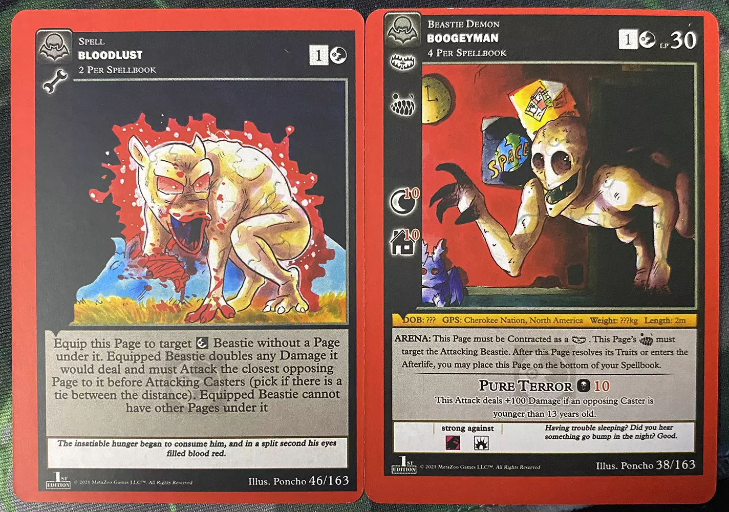 - While on the topic of Poncho, and not at all considered an error, but an interesting thing about their artist name over past sets is, they used to be credited as ‘Alfonso Alvarez’ on some sample cards, with some cards having ‘PONCHO’ (in all caps), and other later cards having ‘Poncho.’ It has since returned back to ‘PONCHO’ for Nightfall and Wilderness. This is also just something I happen to notice while putting MetaZoo HQ together.