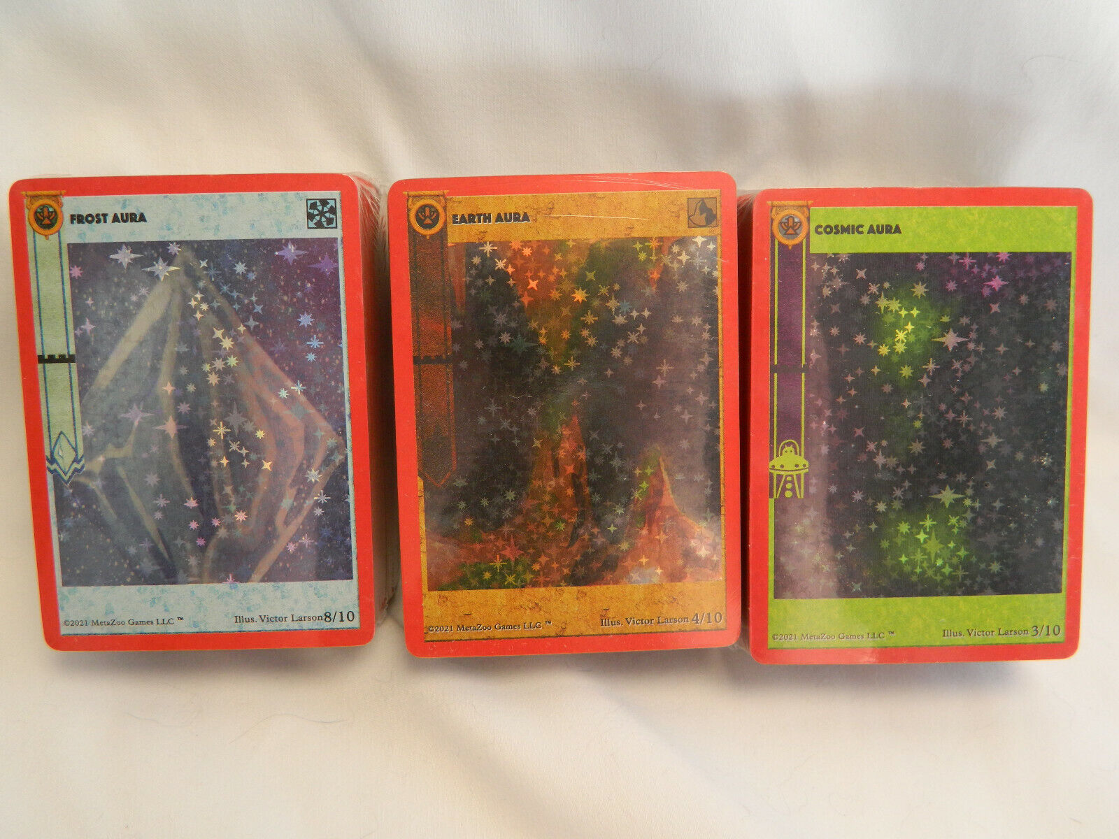 - The aura type icon (found top-right) is missing on the Brilliant Aura ‘Cosmic Aura’ cards. This holds true for all of the full holos and the non holos.