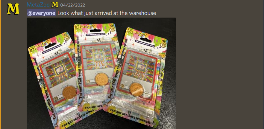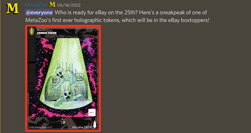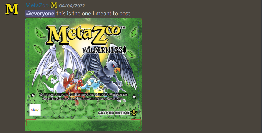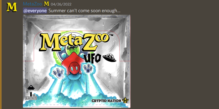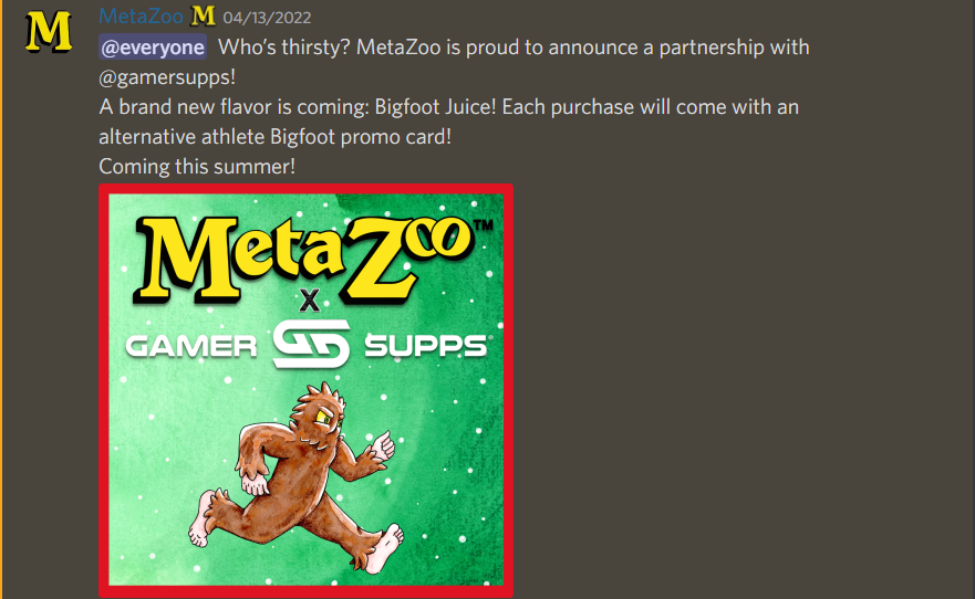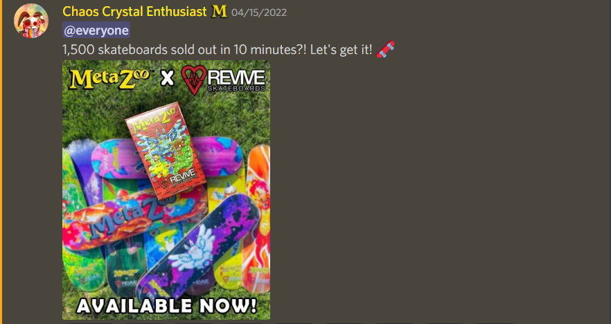 MetaZoo has partnered with the skateboarding company Revive. They released their first product. It was focused around their first set, Cryptid Nation. The print run is 2,000 boxes. Each box contained one redeemable promo card and one non-redeemable promo card. For the redeemable card, you could scratch off, enter your code, and get a skateboard deck from Revive. You can find more information about MetaZoo X Revive here. Once this dropped for sale, there was tons of excitement through MetaZoo’s Discord. The product only lasted about 27 mins.