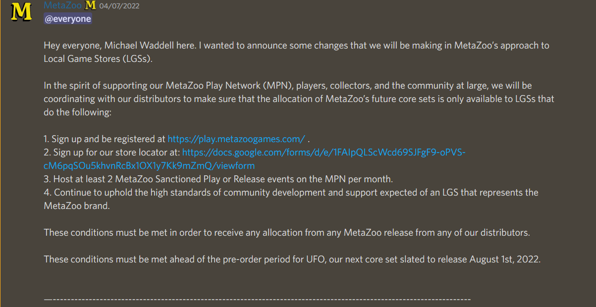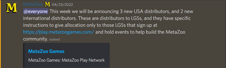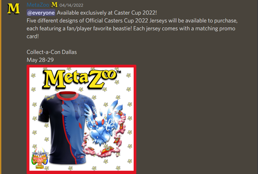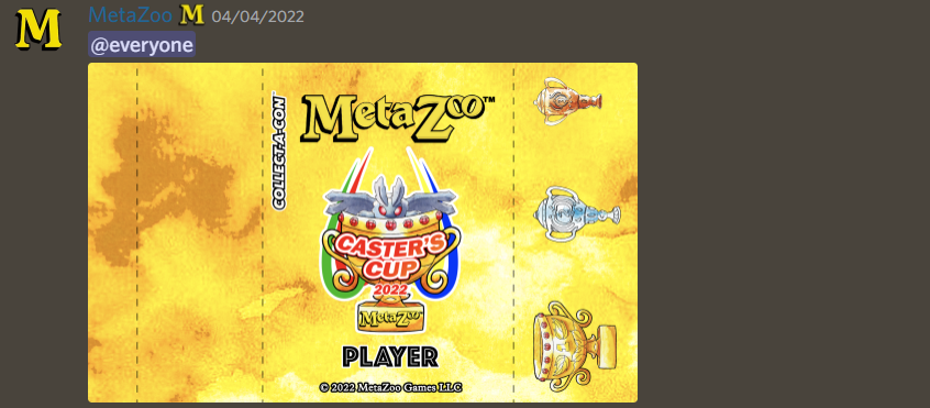 Let us move to the upcoming Caster’s Cup. The Casters Cup will be located in the Dallas Forth Worth area. You can find out more information about it here and from MetaZoo here. The more details we learn about the Caster’s Cup, the more excited everyone has around the community.