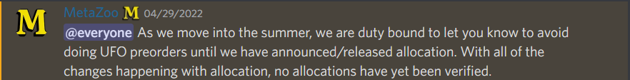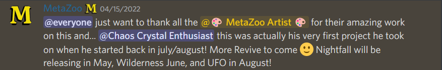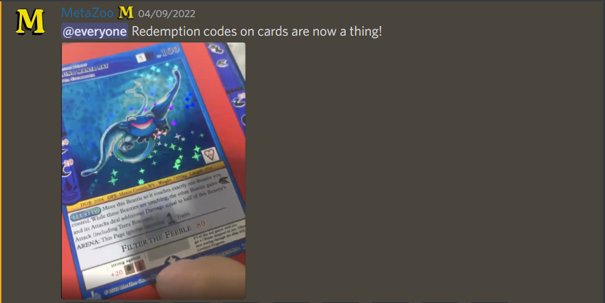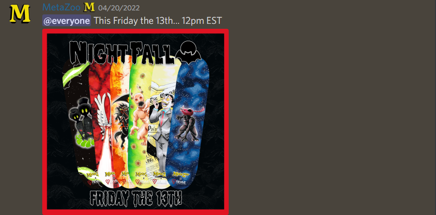 The next drop with Revive was MetaZoo’s 2nd core set, NightFall. The print run was the same. It was released on Friday the 13th. This time the product lasted only 100 seconds. There was so much excitement from the first set people wanted to get their hands on their decks and cards. The photos of people’s decks came rushing in on the main discord, and I believe this generated more excitement. I think the market afterward could have also played a part in more excitement.